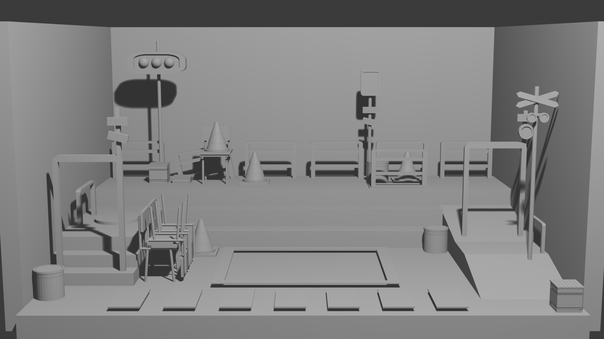 좋아하는 뮤지컬 작품 중 타조소년들을 관람한 후, 그 인상을 바탕으로 제작한 소극장 무대 모델링 작품입니다. 원작 무대의 분위기와 장면 전환 요소들을 참고하며, 공간감과 사거리 같은 구조 표현을 중심으로 연습한 배경 모델링입니다.