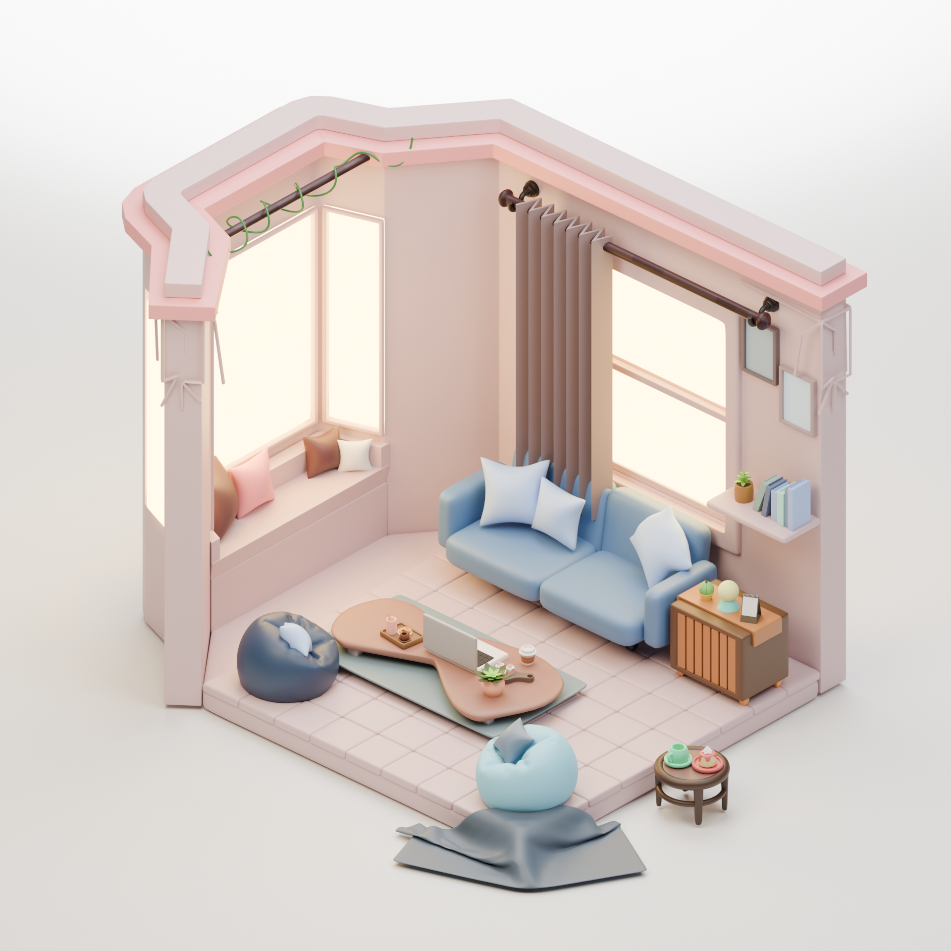 부드럽고 포근한 거실 느낌이 나도록 텍스처(Texture), 색상(Color) 편집에 집중했습니다.